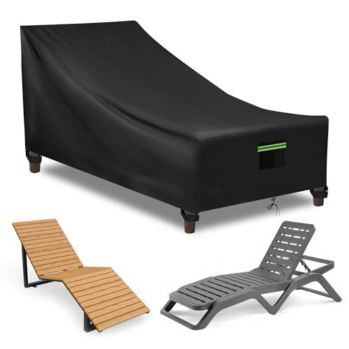 Dokon Garden Folding Reclining Chair Covers Waterproof, Windproof, Anti-UV, Heavy Duty Oxford Fabric Outdoor Folding Chair Covers, Patio Sunbed Cover, Sun Lounger Cover (96x84cm) - Black