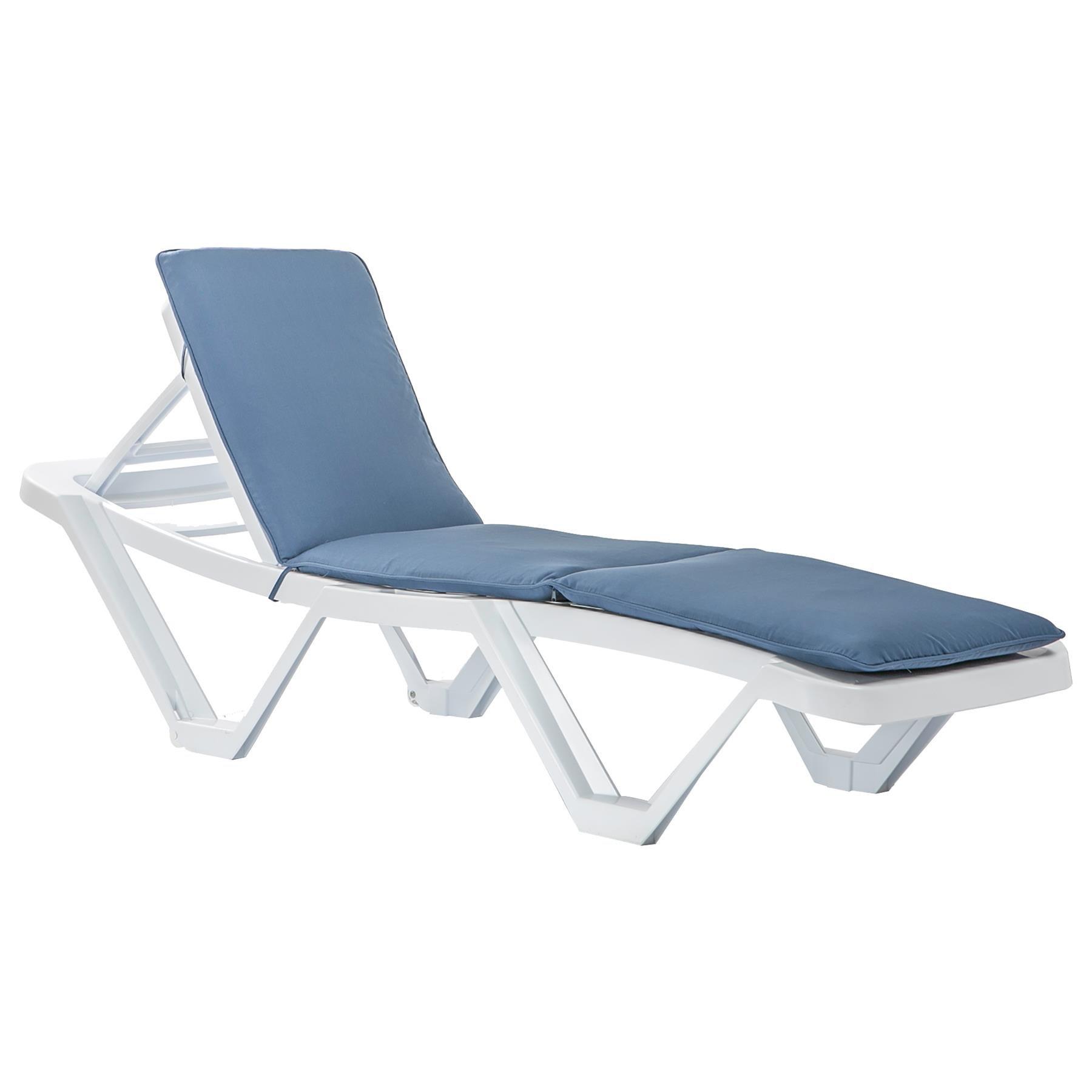 Master Sun Lounger & Cushion Set White/Navy