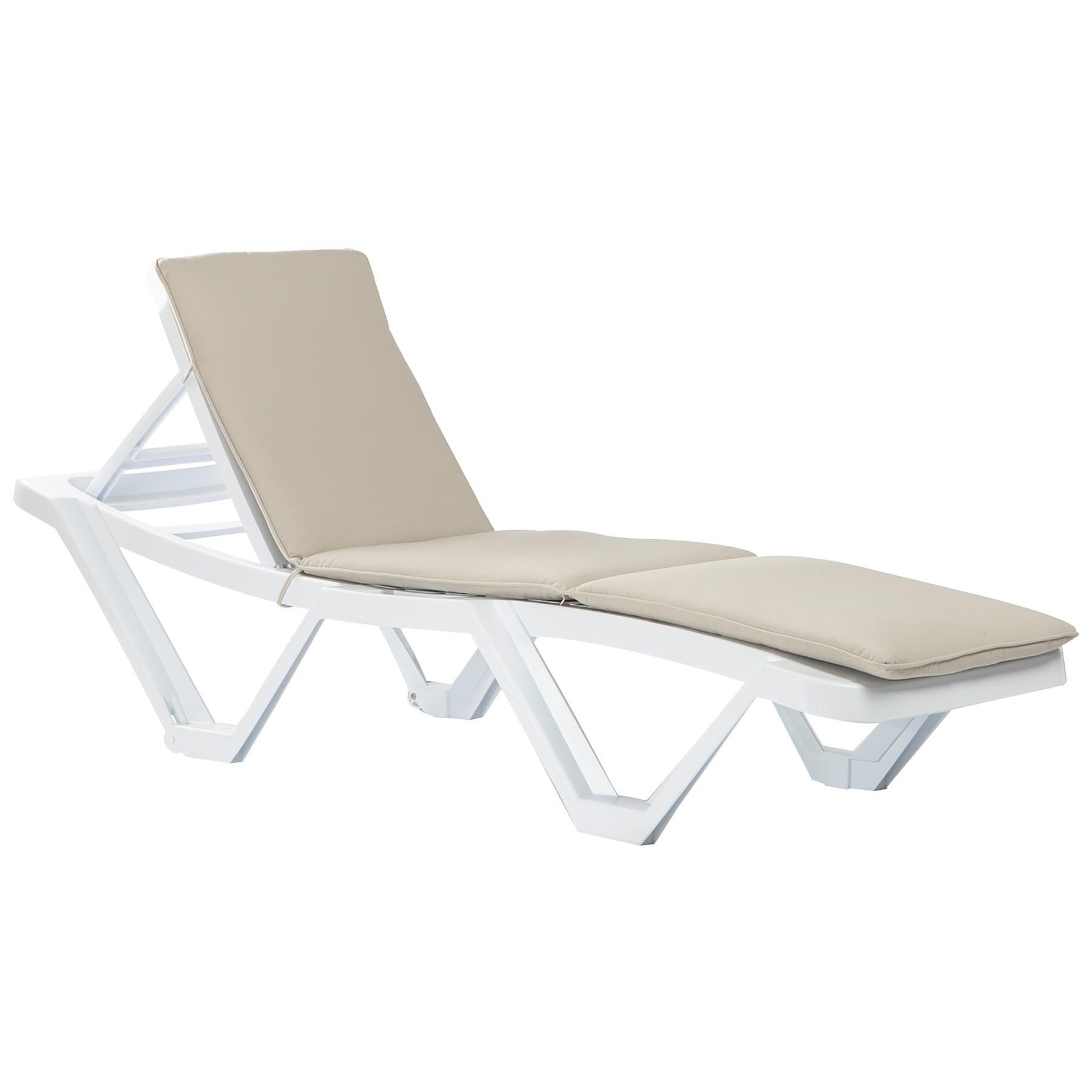 Master Sun Lounger & Cushion Set White/Beige