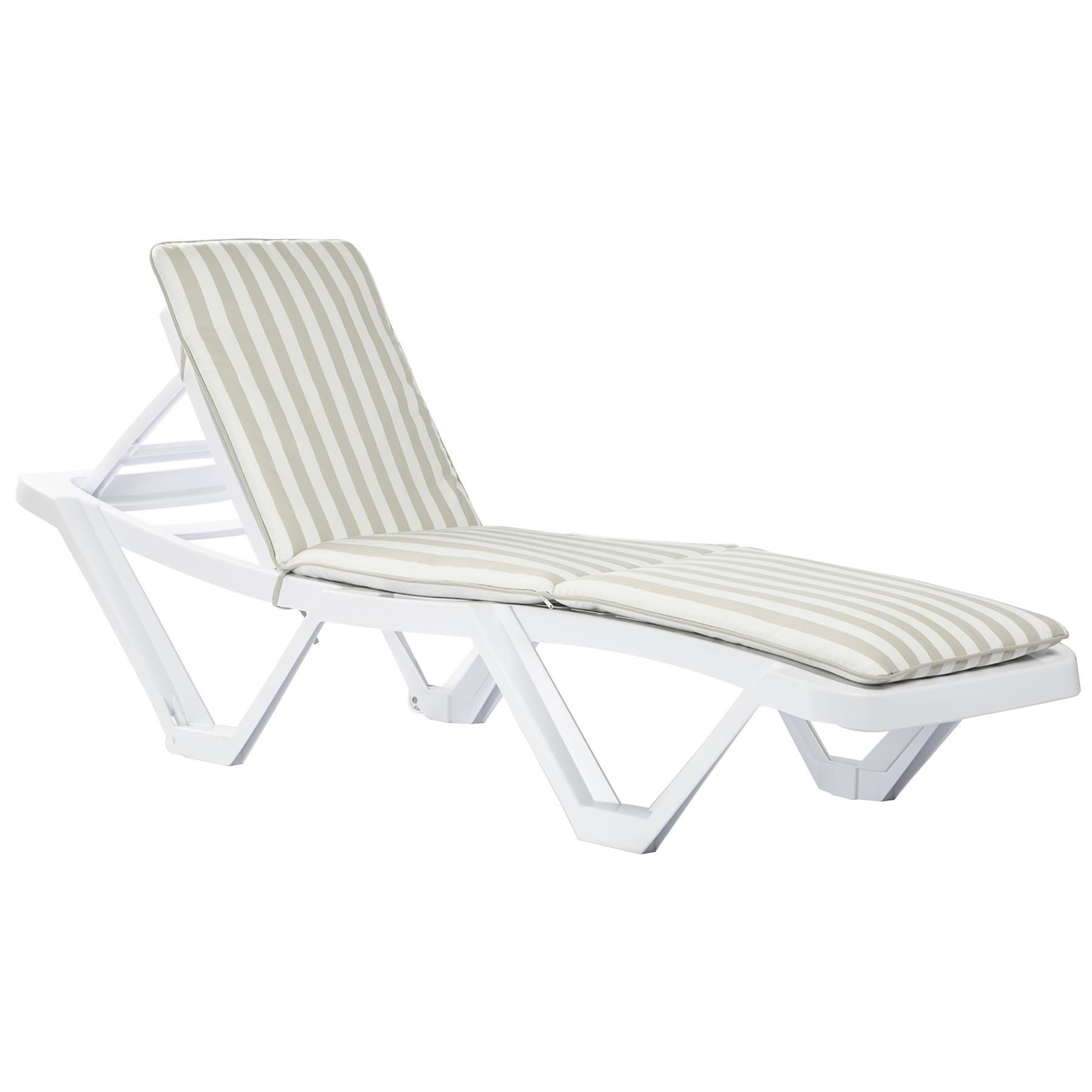 Master Sun Lounger & Cushion Set White/Beige Stripe