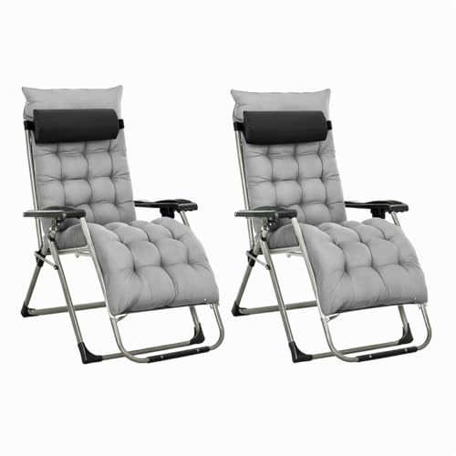 Neo 2pcs Zero Gravity Sun Lounger With Padded Cushions Foldable Reclining Chair Portable Garden Furniture Camping Thick Comfortable Non-Slip Relaxer Indoor & Outdoor (Grey)