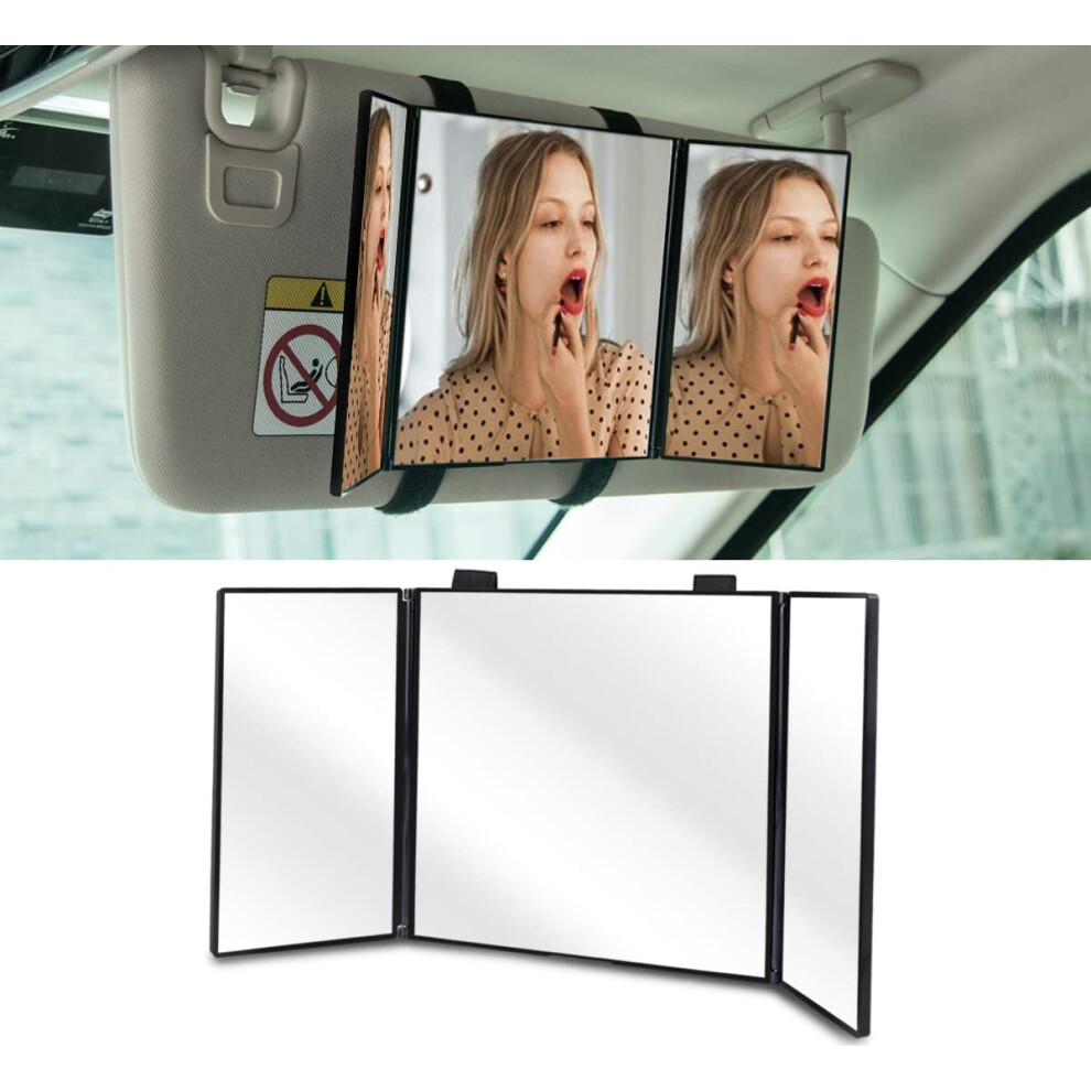 Car Makeup Mirror, Universal Sun Visor Mirror, Folding Vanity Mirror, Cosmetic Mirror with Elastic Hook and Loop Fitting On Sun-shading Mirror Or Rear