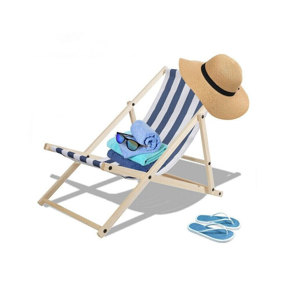 Wooden Deck Beach Folding Chair Lounger Sunbed Garden Seaside Beach Chairs Seat