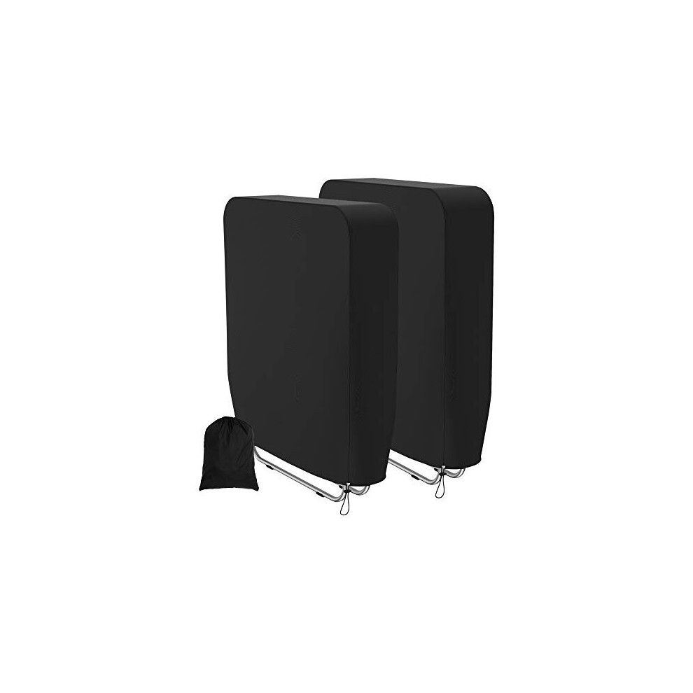 Garden Folding Reclining Chair Cover, 2Pcs Waterproof, Windproof, Anti-UV, Hydrophobic Oxford Fabric for Outdoor Patio Sunbed Sun Lounger, Includes Storage Bag (110 x 71 cm) - Black