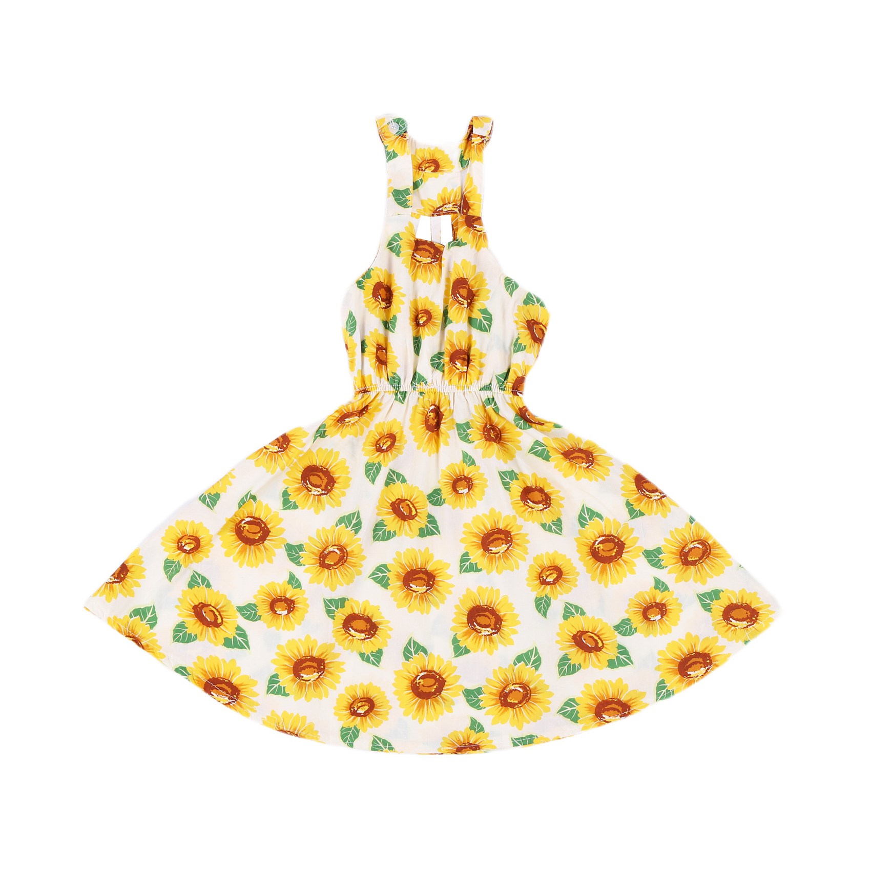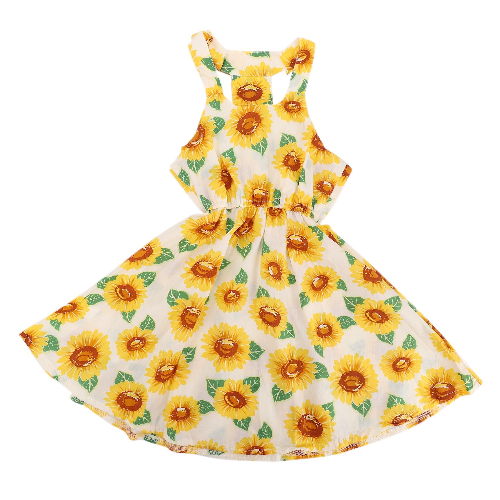 Girl Dress Sunflower Print Sleeveless Backless Floral Dress4994