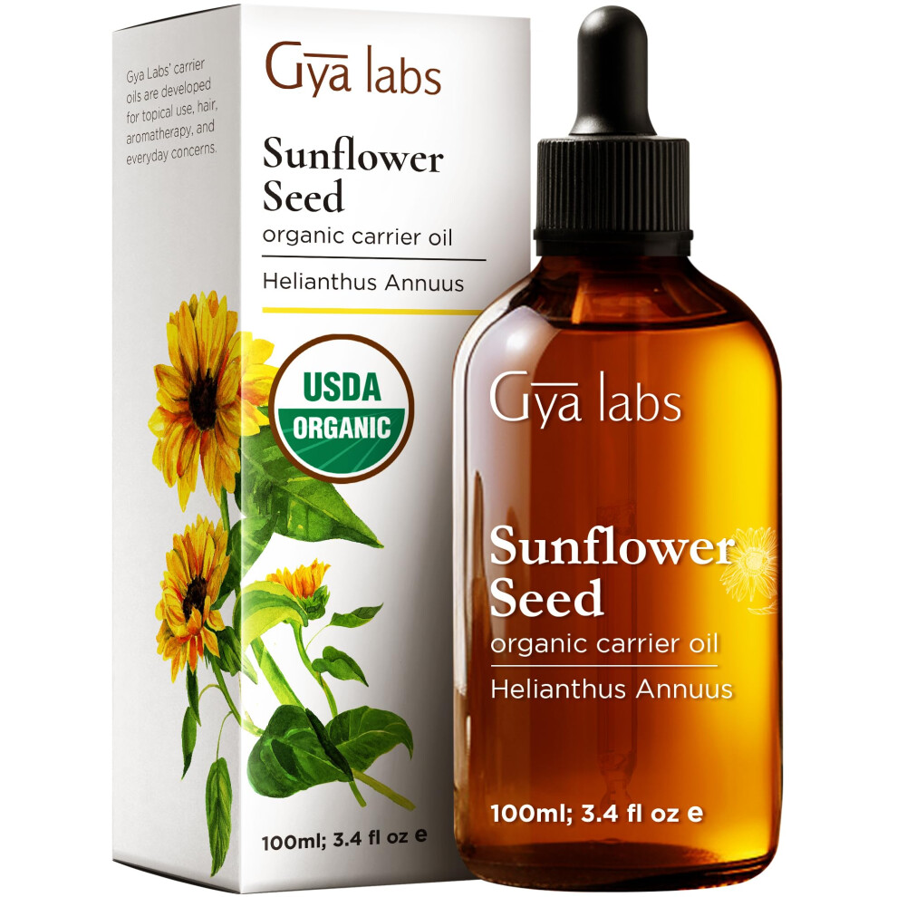 Gya Labs Organic Sunflower Oil for Skin - Sunflower Oil for Hair Growth - Pure Cold Pressed Sunflower Seed Oil Unrefined for Face, Scalp,