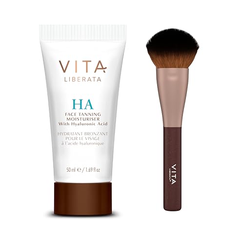 VITA LIBERATA HA Face Tan 50ml & Brush Bundle, Tanning Moisturiser with Hyaluronic Acid, Hydrating Skincare, Sun-Kissed Radiant Glow, Includes Application Blending Brush, Streak Free Result