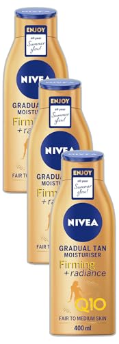 NIVEA Q10 Firming Plus Radiance Gradual Tan (400 ml), Firming Cream with Q10, Supports Gradual Tan, Tanning Moisturiser for a Sun-Kissed Radiant Glow (Pack of 3)