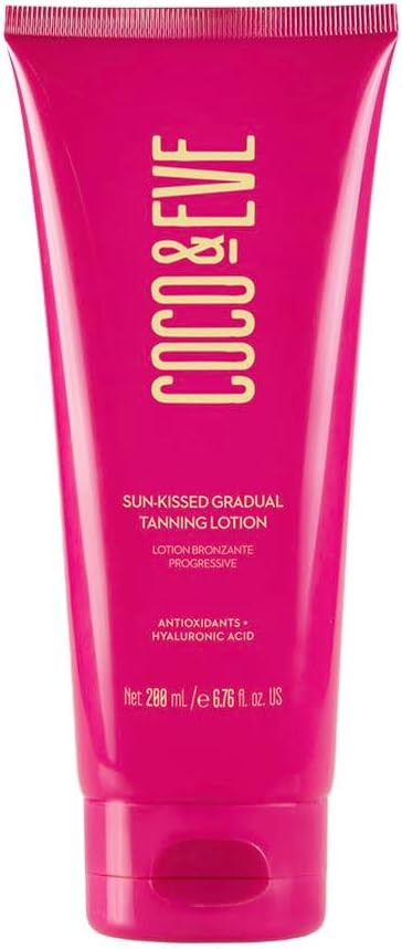 Coco & Eve Sun-kissed Gradual Tanning Lotion - Natural Sunless Moisturizing Tanner with 72H Hydration & Streak-Free, Buildable Glow. Skincare-Infused with Antioxidants and Hyaluronic Acid. (200ml)