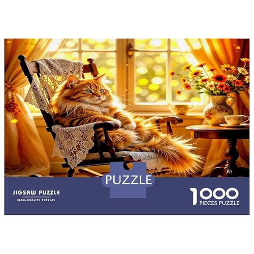 Cute Cat Heavyweight Paper Cat in Rocking Chair Sunlight Jigsaw Puzzle Relaxing Puzzle Gift 70x50cm/1000pcs