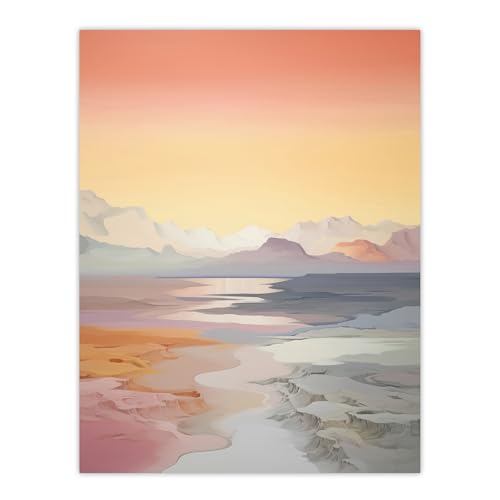 Wee Blue Coo Serenity And Sunlight Salt Lake Desert Landscape Pink Yellow Blue Pastel Colour Oil Painting Large Wall Art Poster Print Thick Paper 18X24 Inch