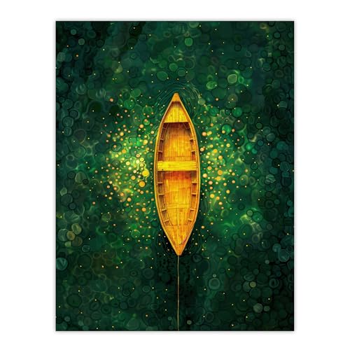 Artery8 Emerald Cove Cave Gold Sunlight Boat Aerial View For Living Room Large Wall Art Poster Print Thick Paper 18X24 Inch