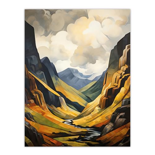 Artery8 Glencoe Gorge Sunlight Breaking Through Clouds Oil Painting National Park Reserve Large Wall Art Poster Print Thick Paper 18X24 Inch