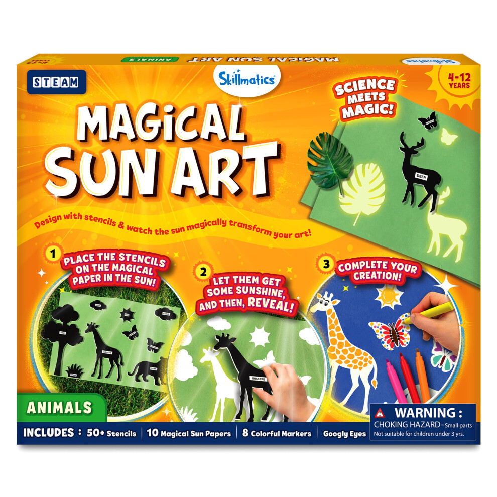Skillmatics Sun Paper Art Kit - STEM Craft Kit for Kids with Decorative Paper Stencils & Markers Create with Sunlight Mess-Free Indoor Fun Gifts