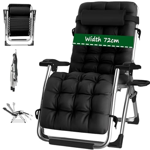 Warmiehomy Zero Gravity Chairs Folding Garden Recliner Chair with Cushion, Headrest Adjustable Sunlounger Chair with Cup Holder Wide Reclining Bedchair for Garden, Beach, Patio, Camping