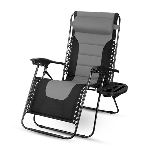 SG Traders Zero Gravity Chair - Reclining Outdoor Sun Lounger, Relaxer Chair for Patio Decking Gardens Camping, Folding Chairs with Cup Holder and Adjustable Headrest Sunlounger (Pack 1 - Black Grey)