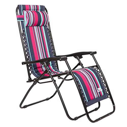 Trespass Reclining Sun Lounger Folding Garden Chair Recliner with Padded Head Pillow Zero Gravity 108cm x 160cm x 64cm Deck Patio Sunlounger Glenesk
