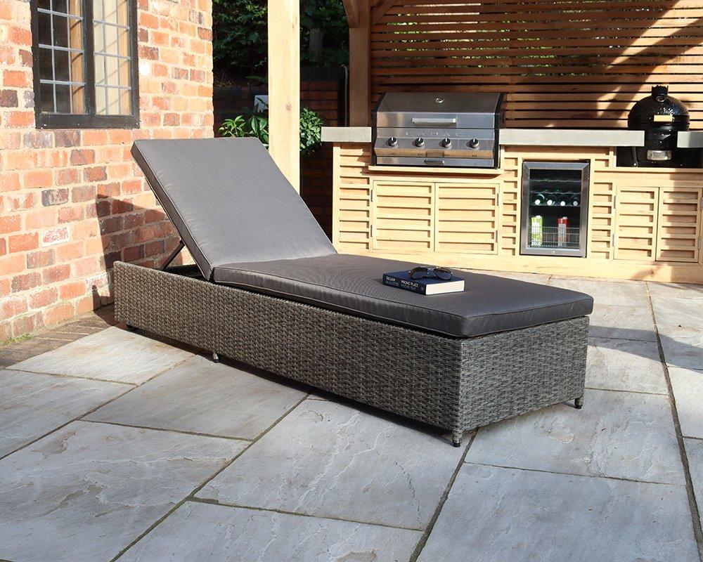 Santiago Rattan Sunlounger Set with Side Table in Grey
