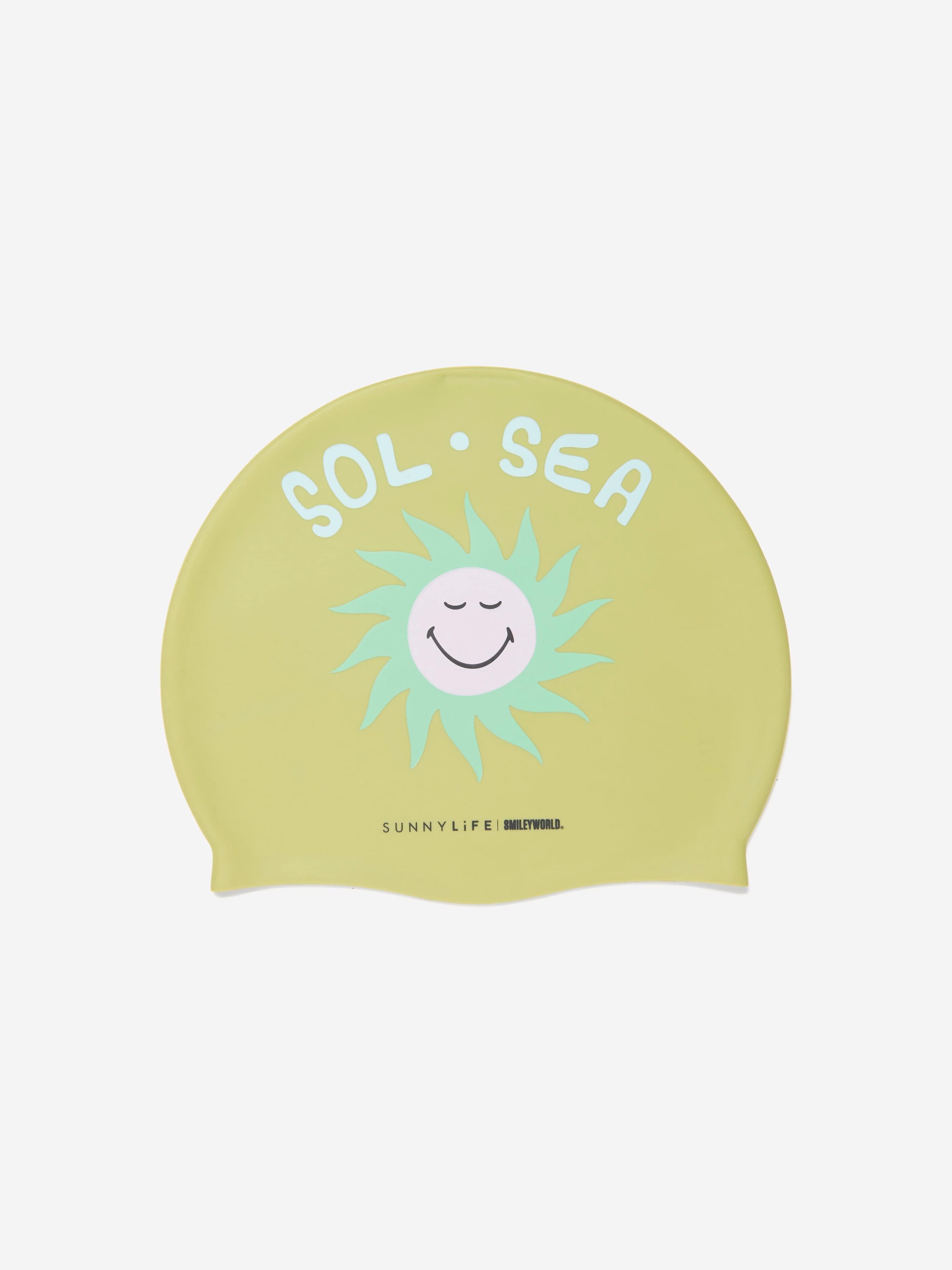 SUNNYLiFE Kids Unisex Smiley World Swimming Cap in Green - Multicolour - One Size