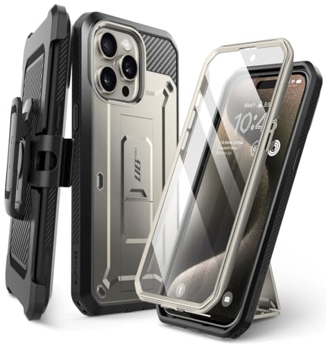 SUPCASE Unicorn Beetle Pro Case for iPhone 15 Pro Max 6.7", Built-in Screen Protector & Kickstand & Belt-Clip Heavy Duty Rugged Case (TiGray)