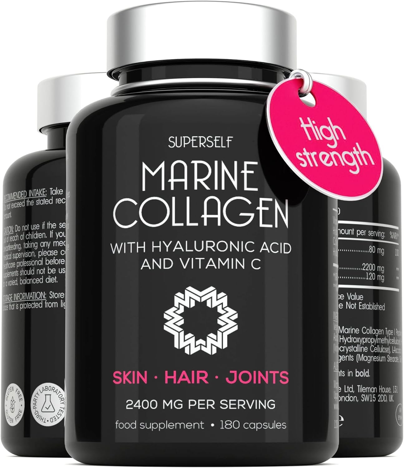 SuperSelf Marine Collagen Capsules 2200mg with Hyaluronic Acid & Vitamin C - 180