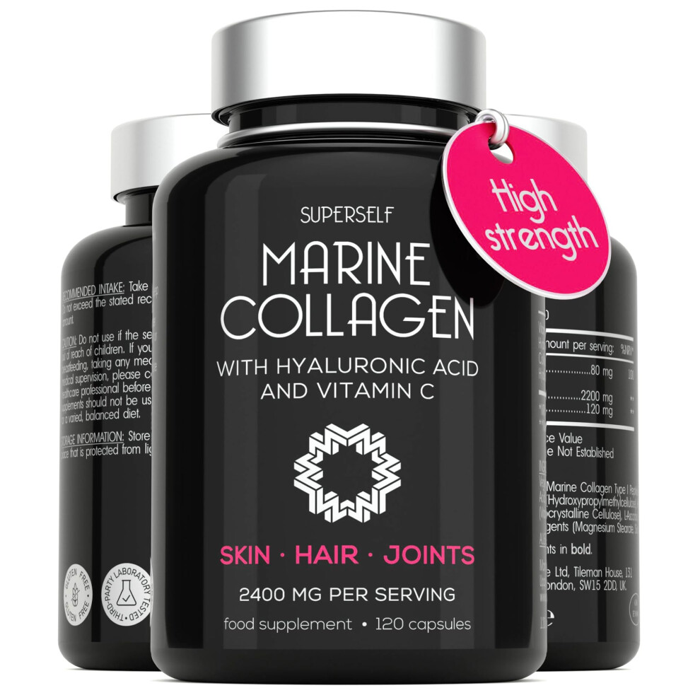SuperSelf Marine Collagen Capsules 2200mg with Hyaluronic Acid & Vitamin C - 120