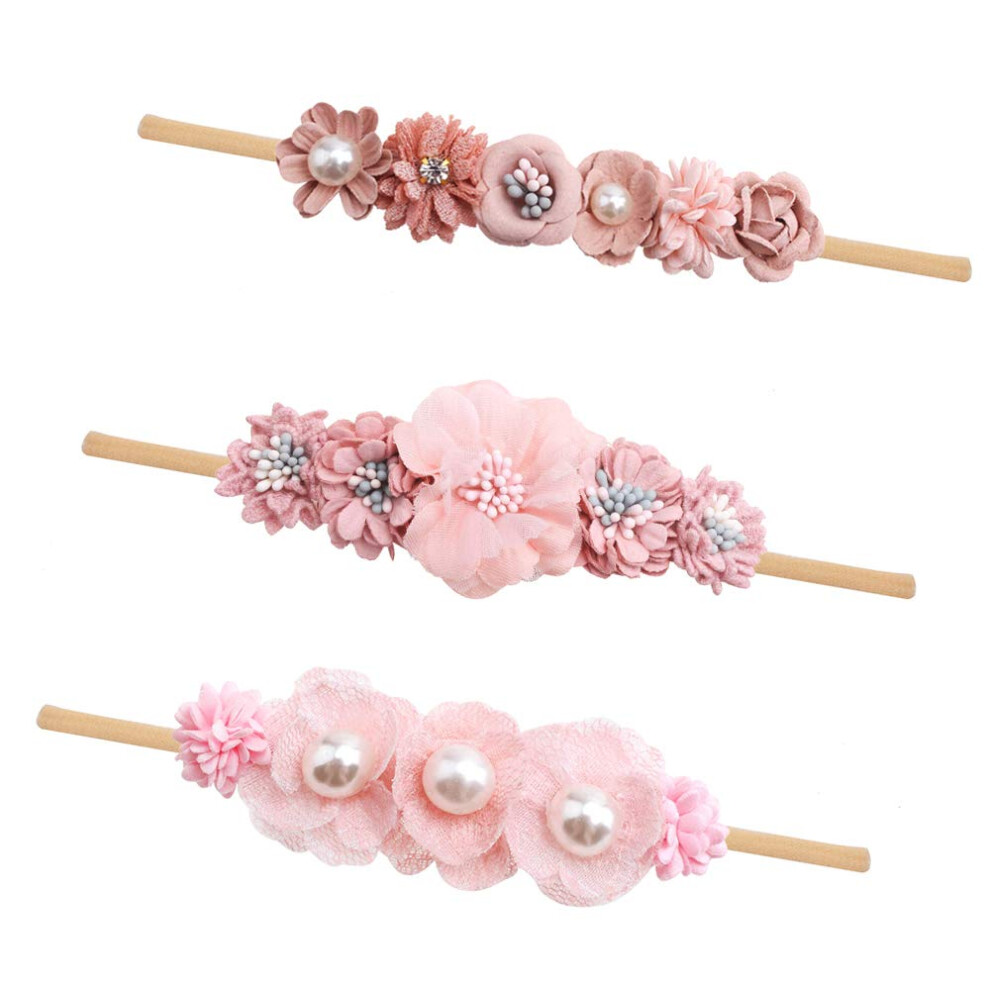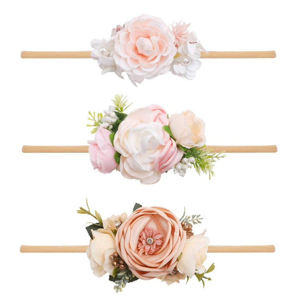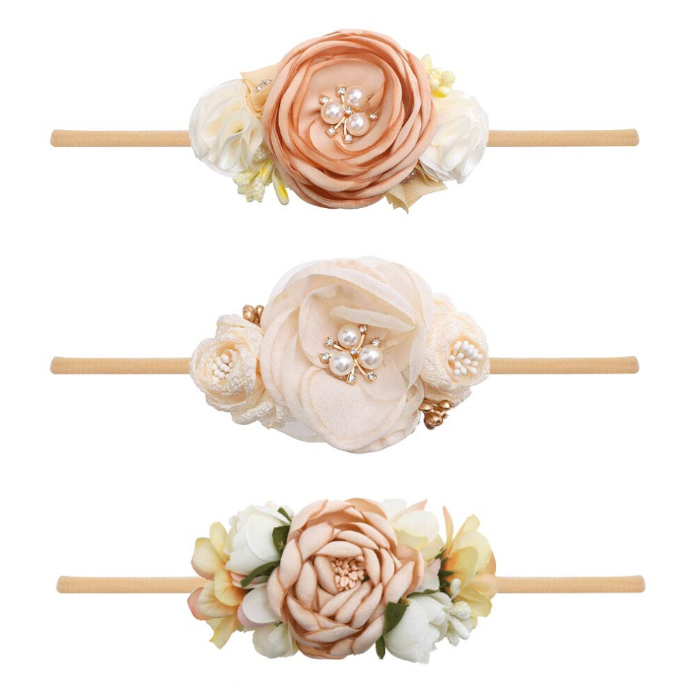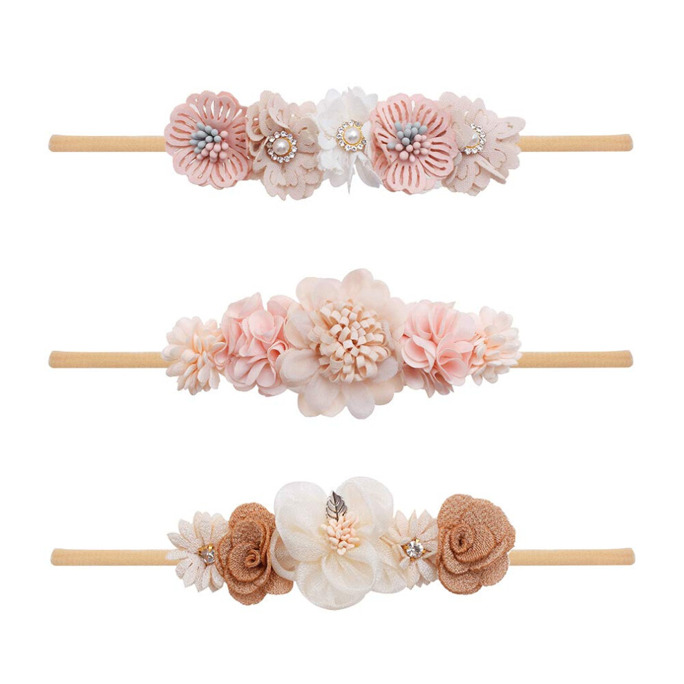 cherrboll 3pcs Baby Girl Flower Headbands Super Soft & Stretchy Nylon