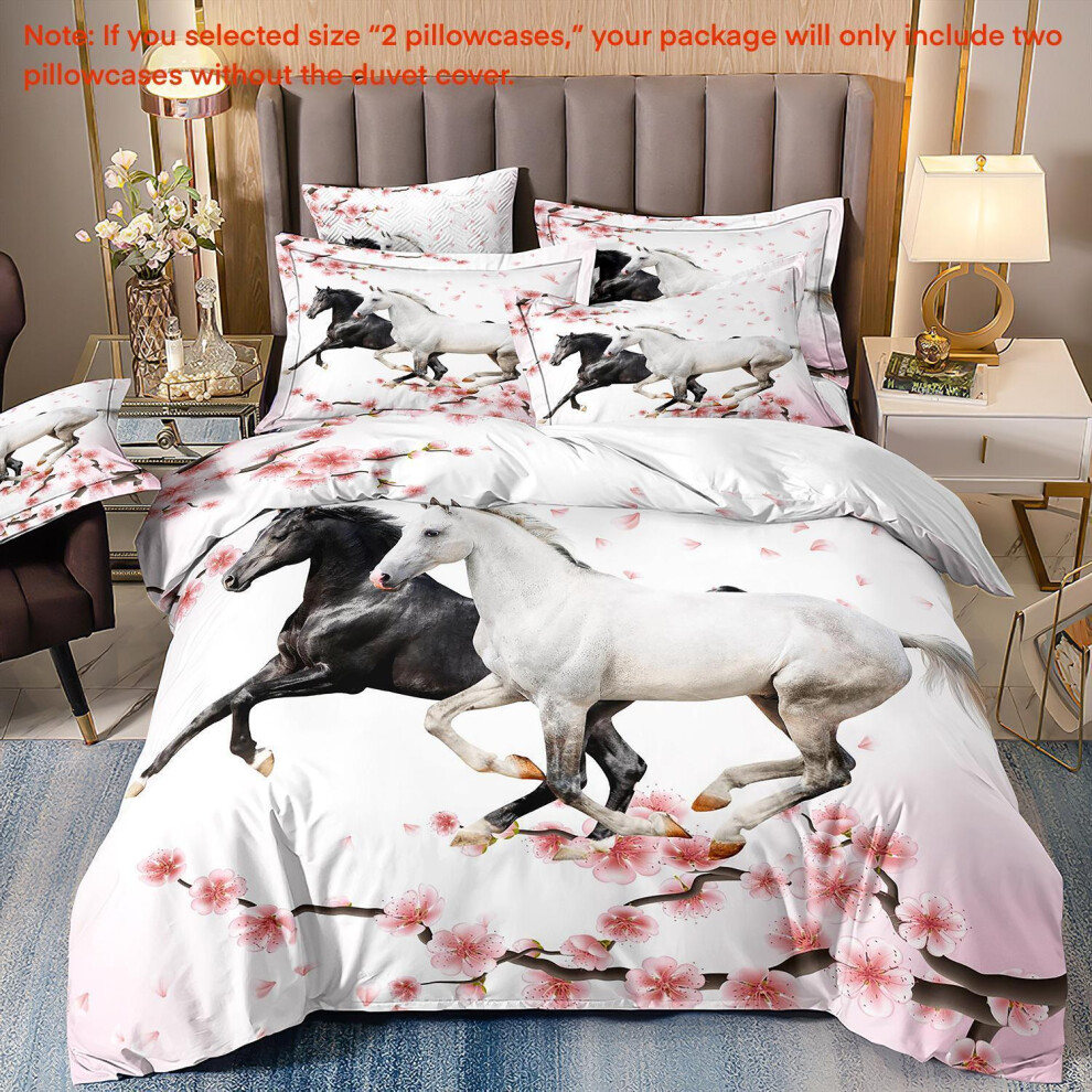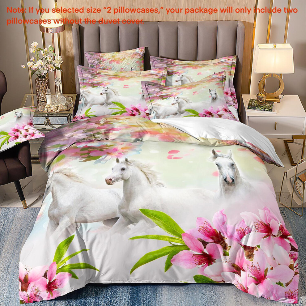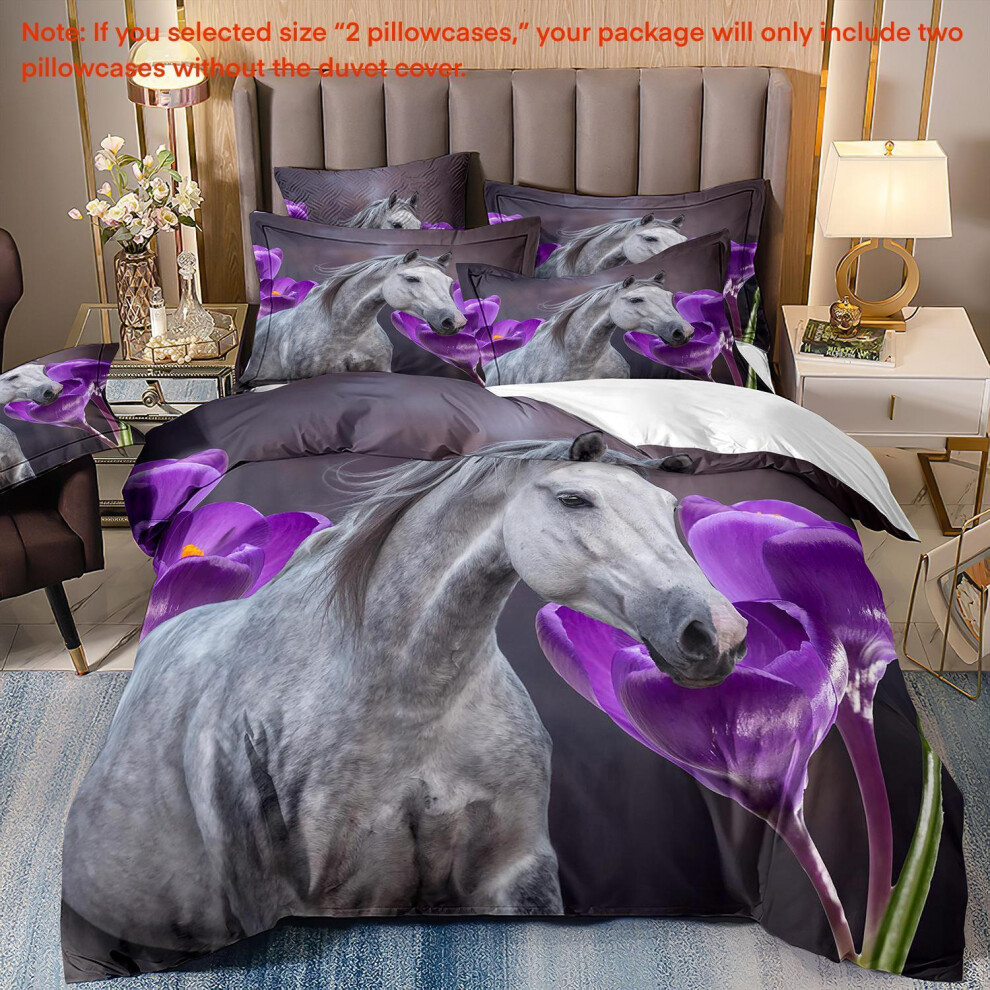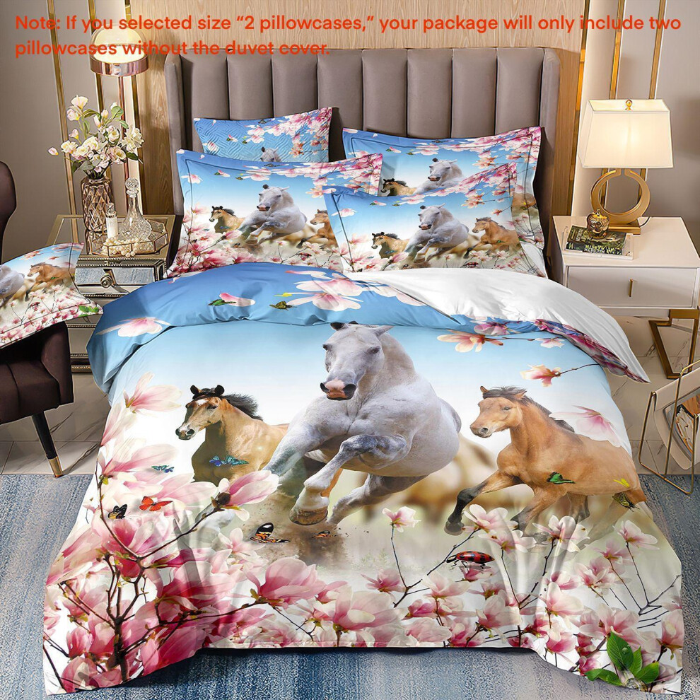 (Super King(260cm à 220cm), 26) Majestic Horse Flower Bedding Set 3Pcs Quilt Duvet Cover Dorm Single Double King