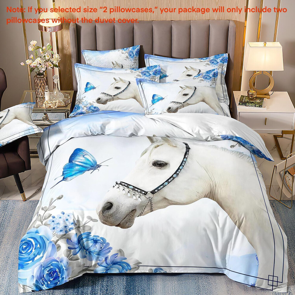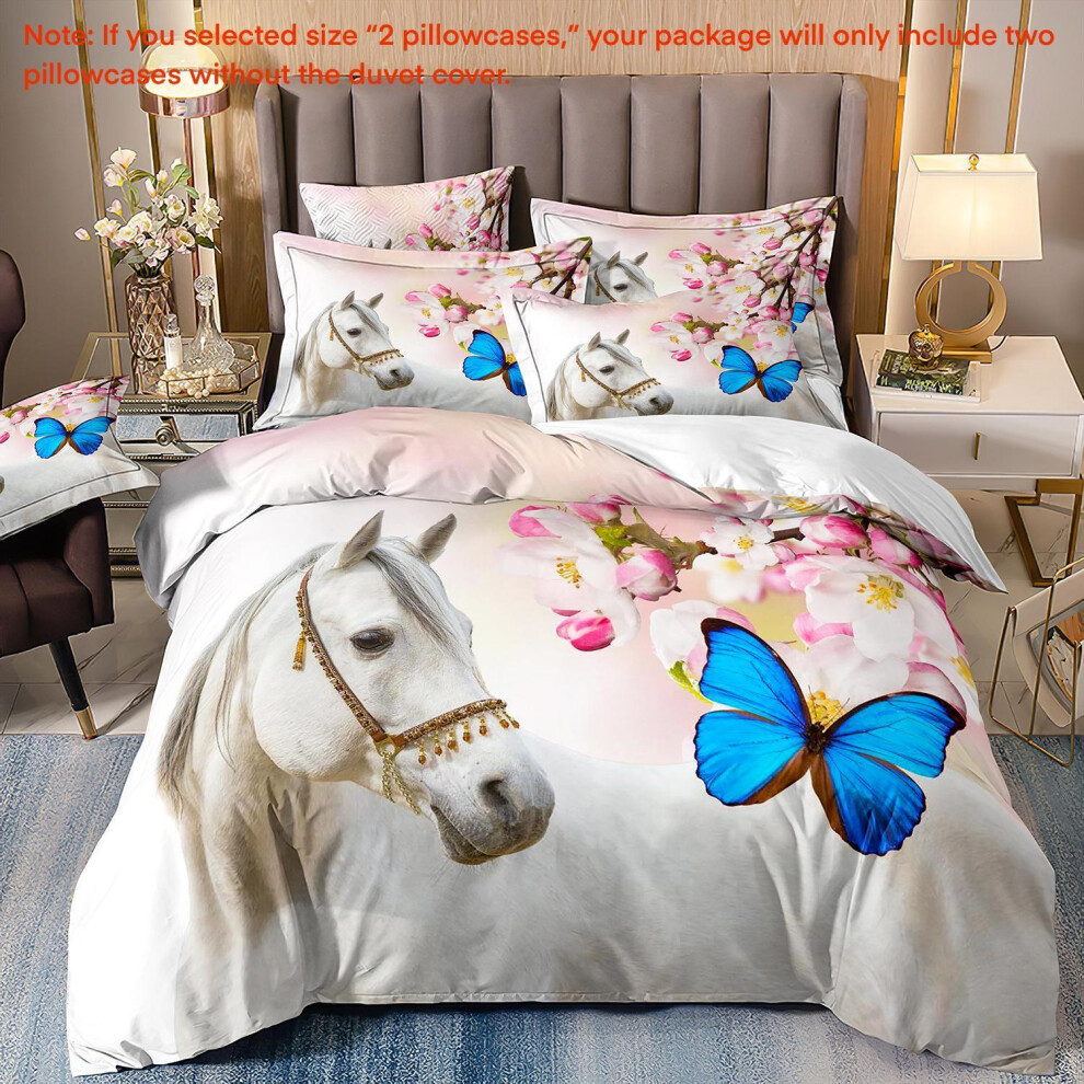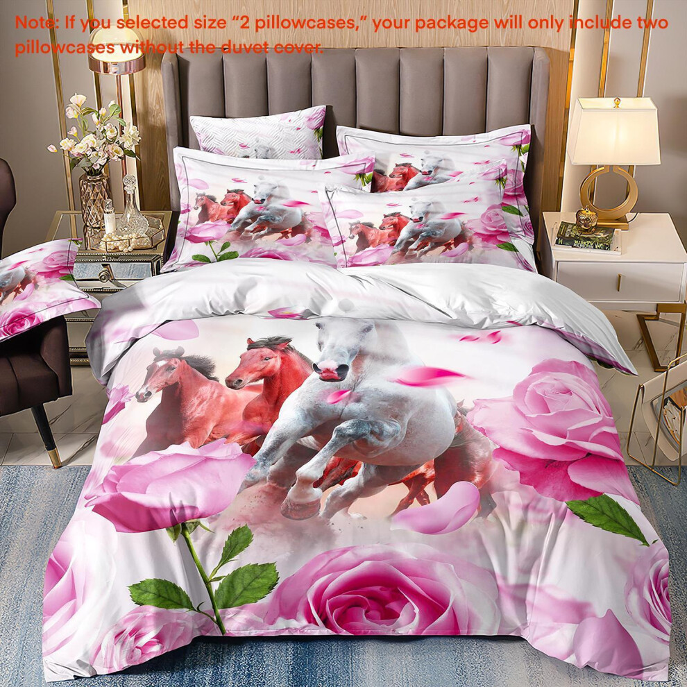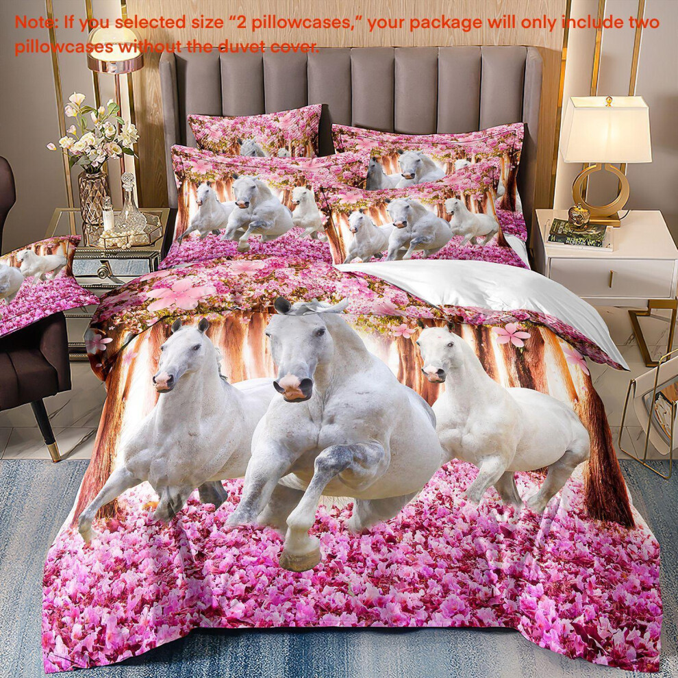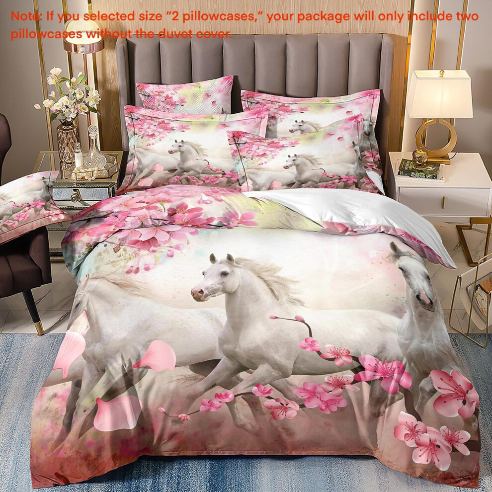 (Super King(260cm à 220cm), 26) Majestic Horse Flower Bedding Set 3Pcs Quilt Duvet Cover Dorm Single Double King
