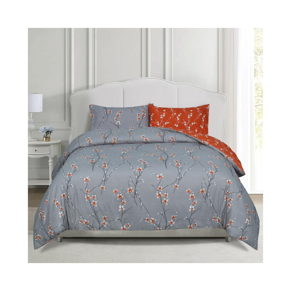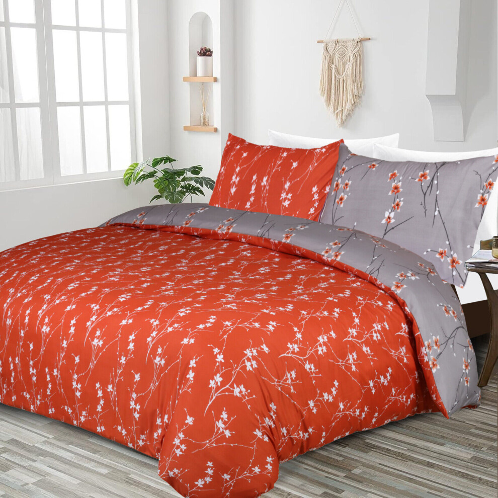 (Super King: 260 X 220cm, Rust Flower) Luxury Printed Duvet Cover 3 Piece Reversible Bedding Set with Pillowcases