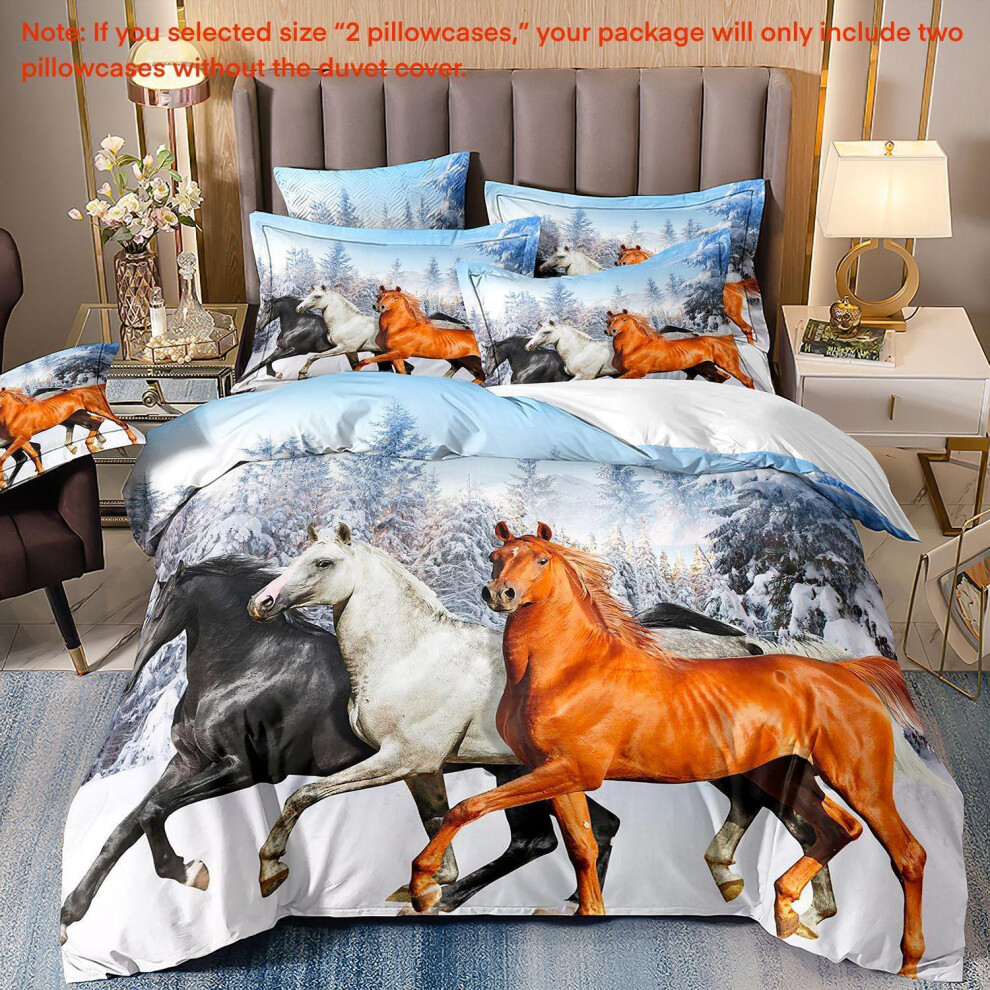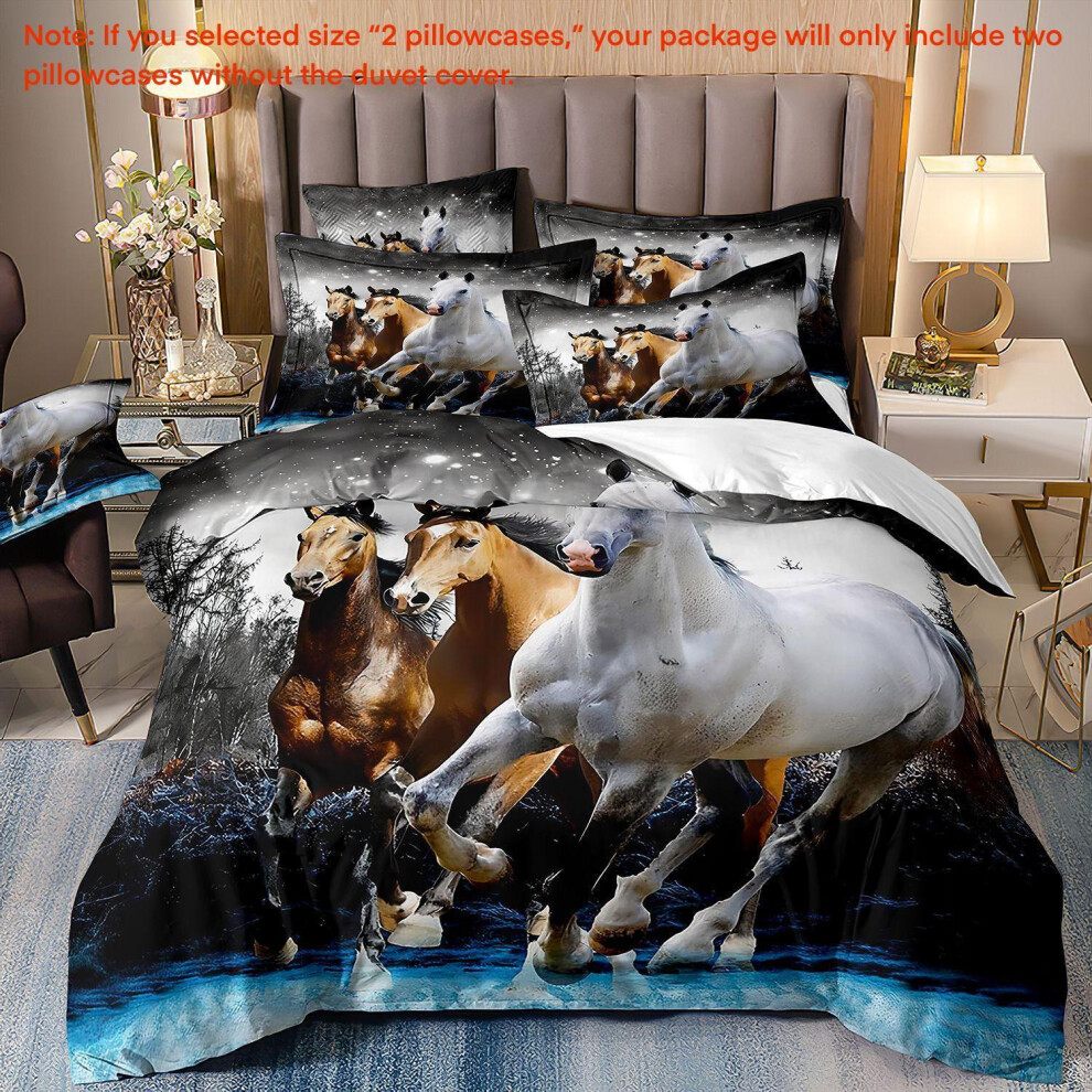 (Super King(260cm à 220cm), 09) Majestic Horse Flower Bedding Set 3Pcs Quilt Duvet Cover Dorm Single Double King