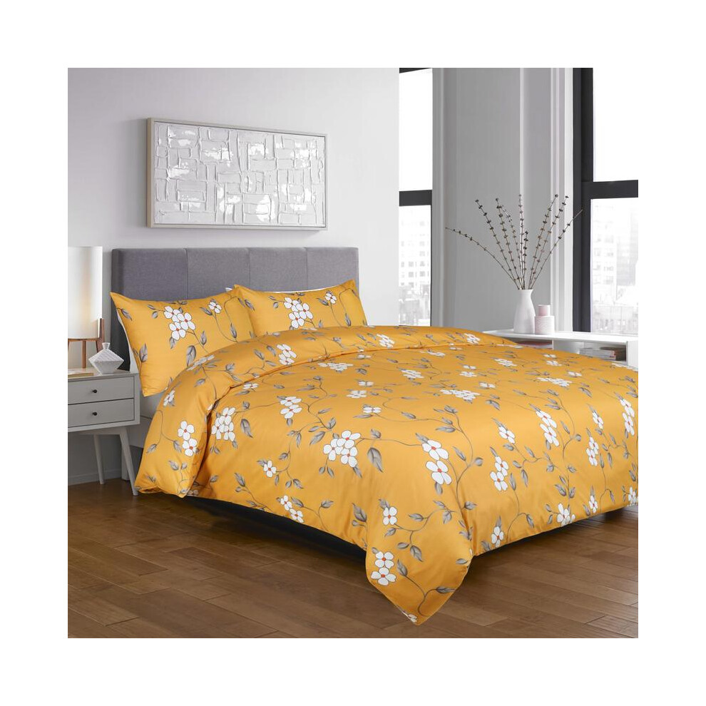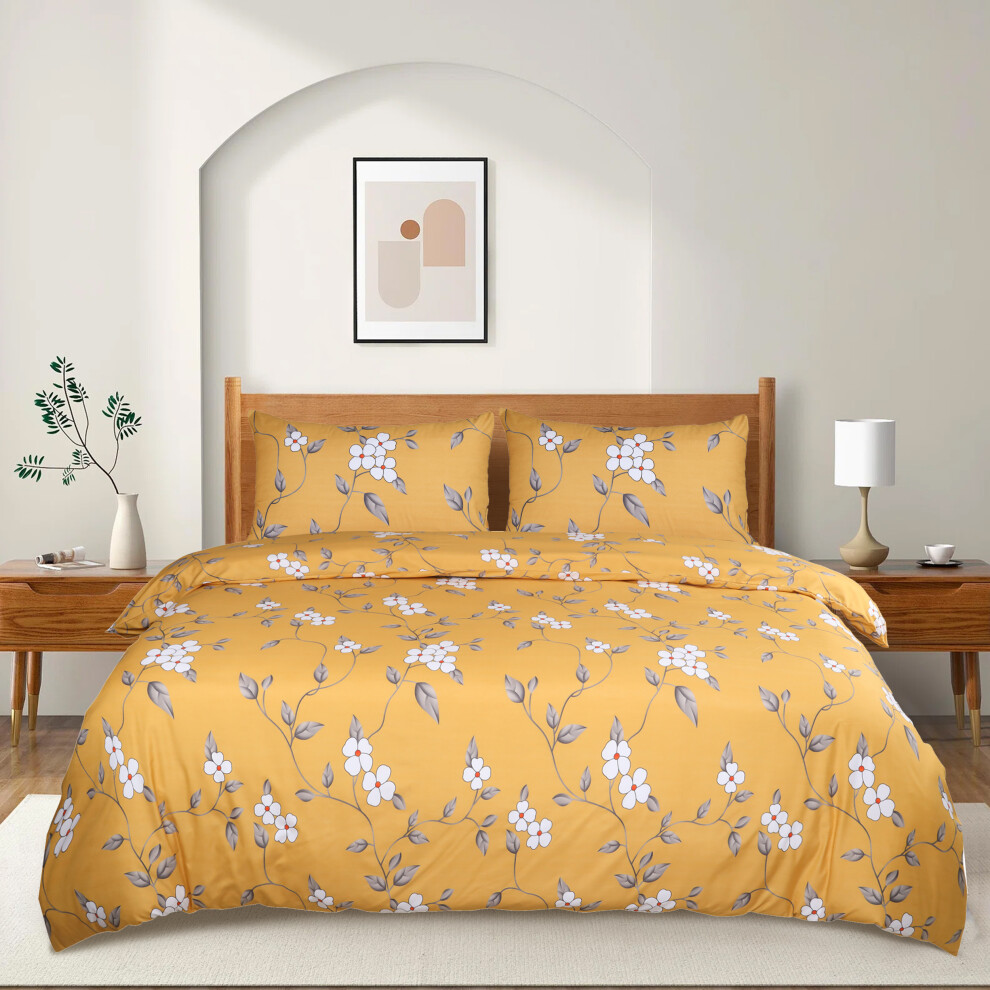 (Super King: 260 X 220cm, Ochre Flower) Luxury Printed Duvet Cover 3 Piece Reversible Bedding Set with Pillowcases