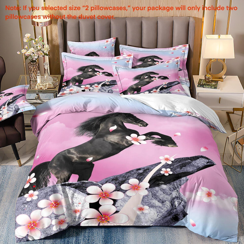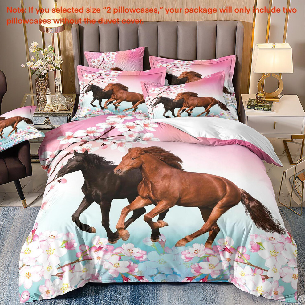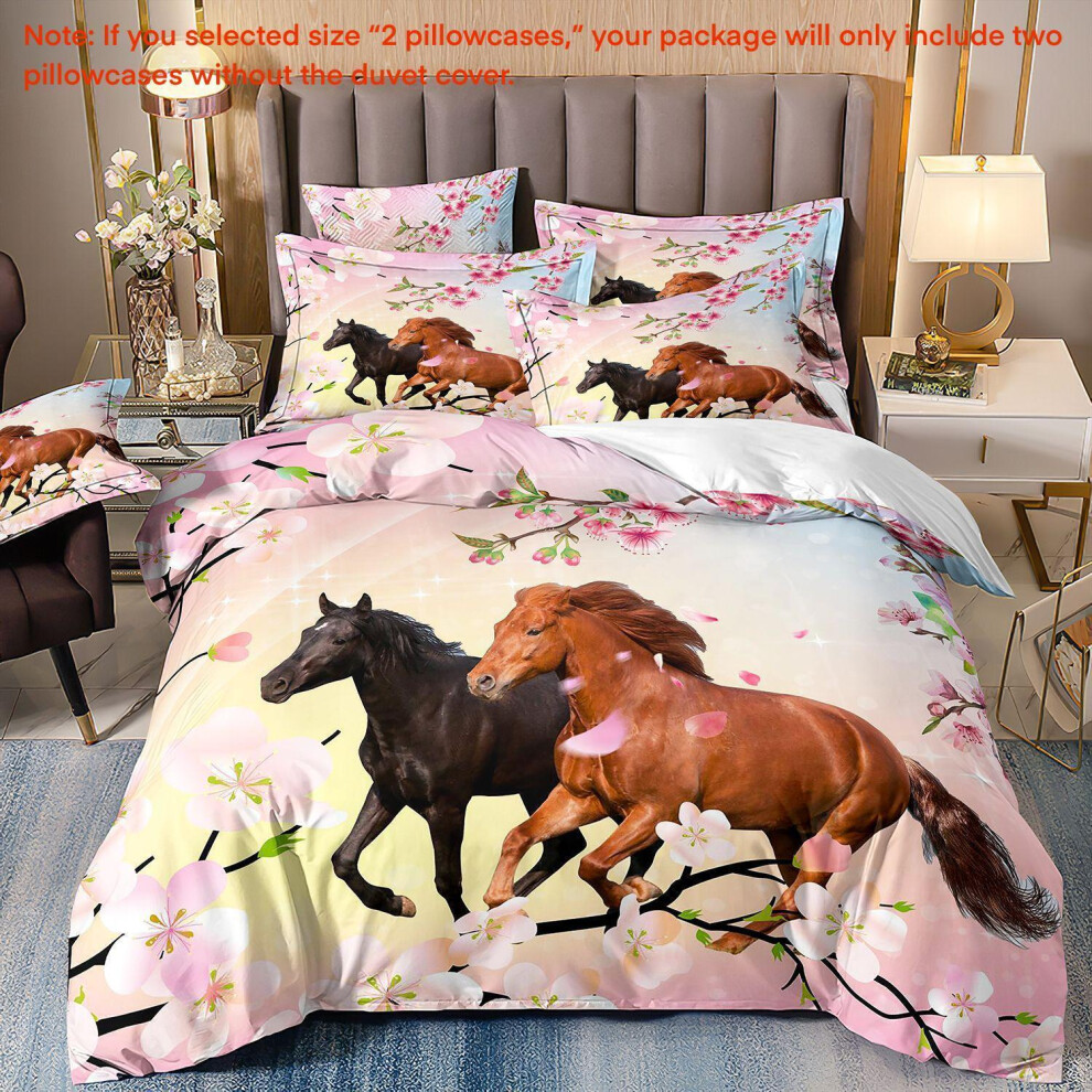 (Super King(260cm à 220cm), 07) Majestic Horse Flower Bedding Set 3Pcs Quilt Duvet Cover Dorm Single Double King