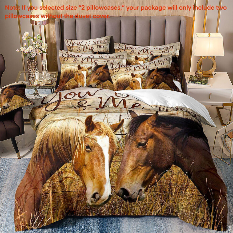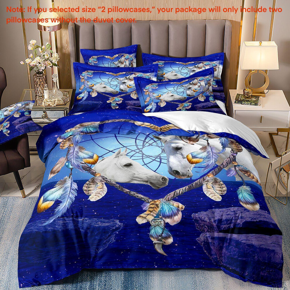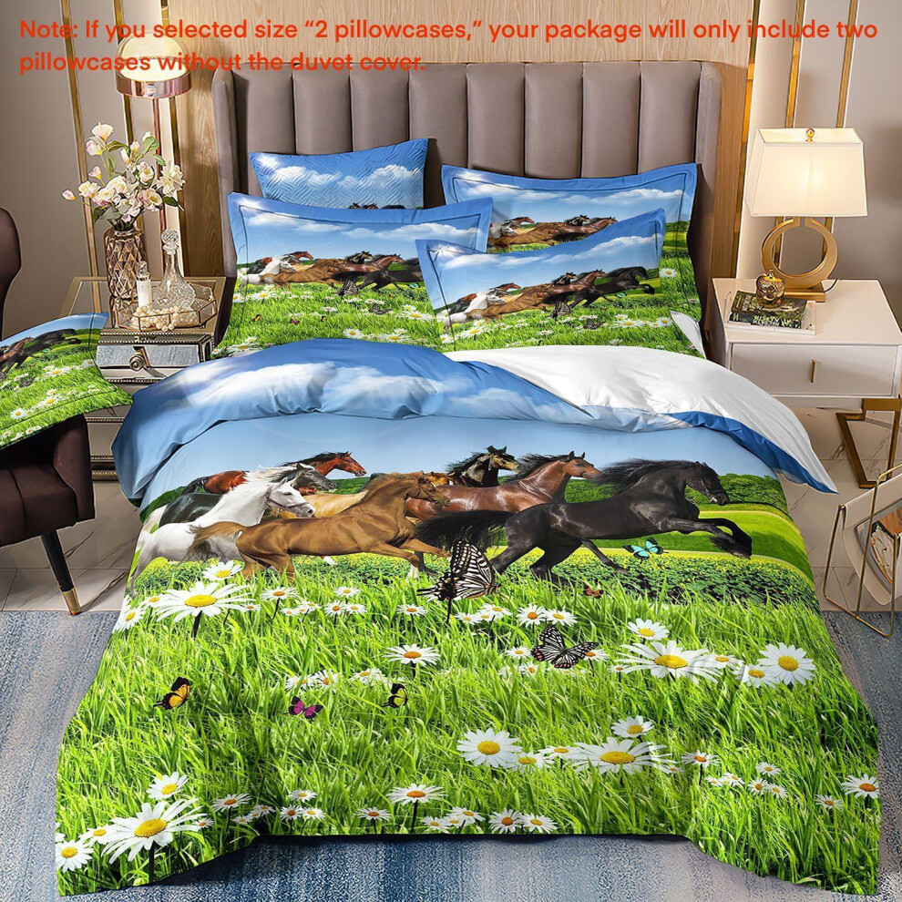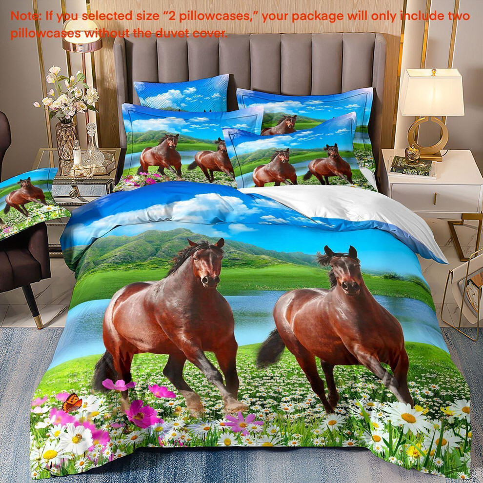 (Super King(260cm à 220cm), 07) Majestic Horse Flower Bedding Set 3Pcs Quilt Duvet Cover Dorm Single Double King