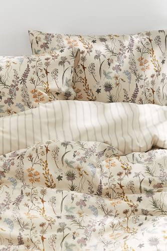 Freyamy Beige Super King Duvet Cover Set - 3pcs Aesthetic Floral Bedding Set Chic, Romantic Flower Bedding Set Super King Size 260x230 cm and 2 Pillowcases 50x75 cm