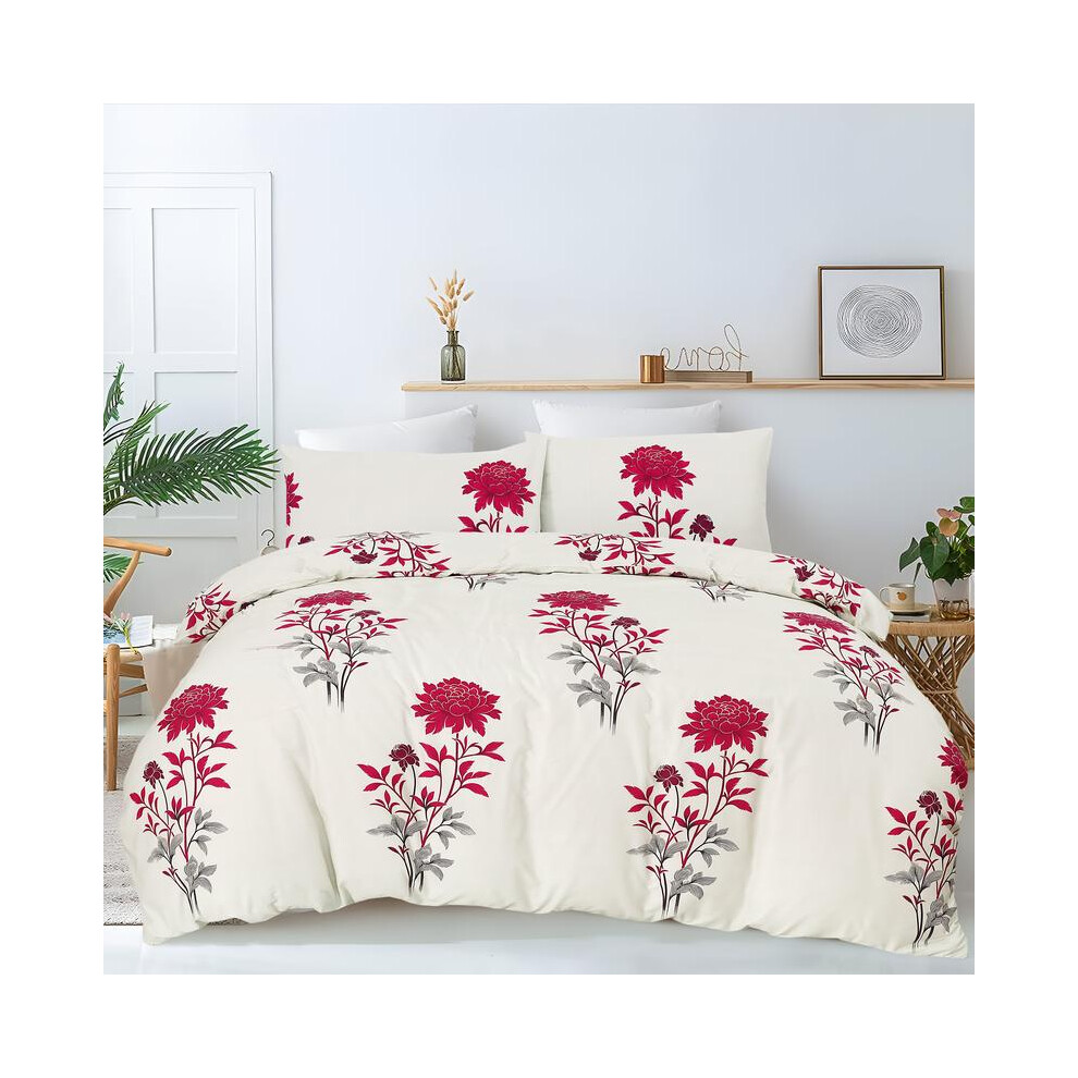 (Red Flower, Super King) 3 Piece Printed Duvet Cover Set Soft Microfiber Bedding with 2 Pillowcases, Lightweight & Wrinkle-Resistant Stylish Patterned