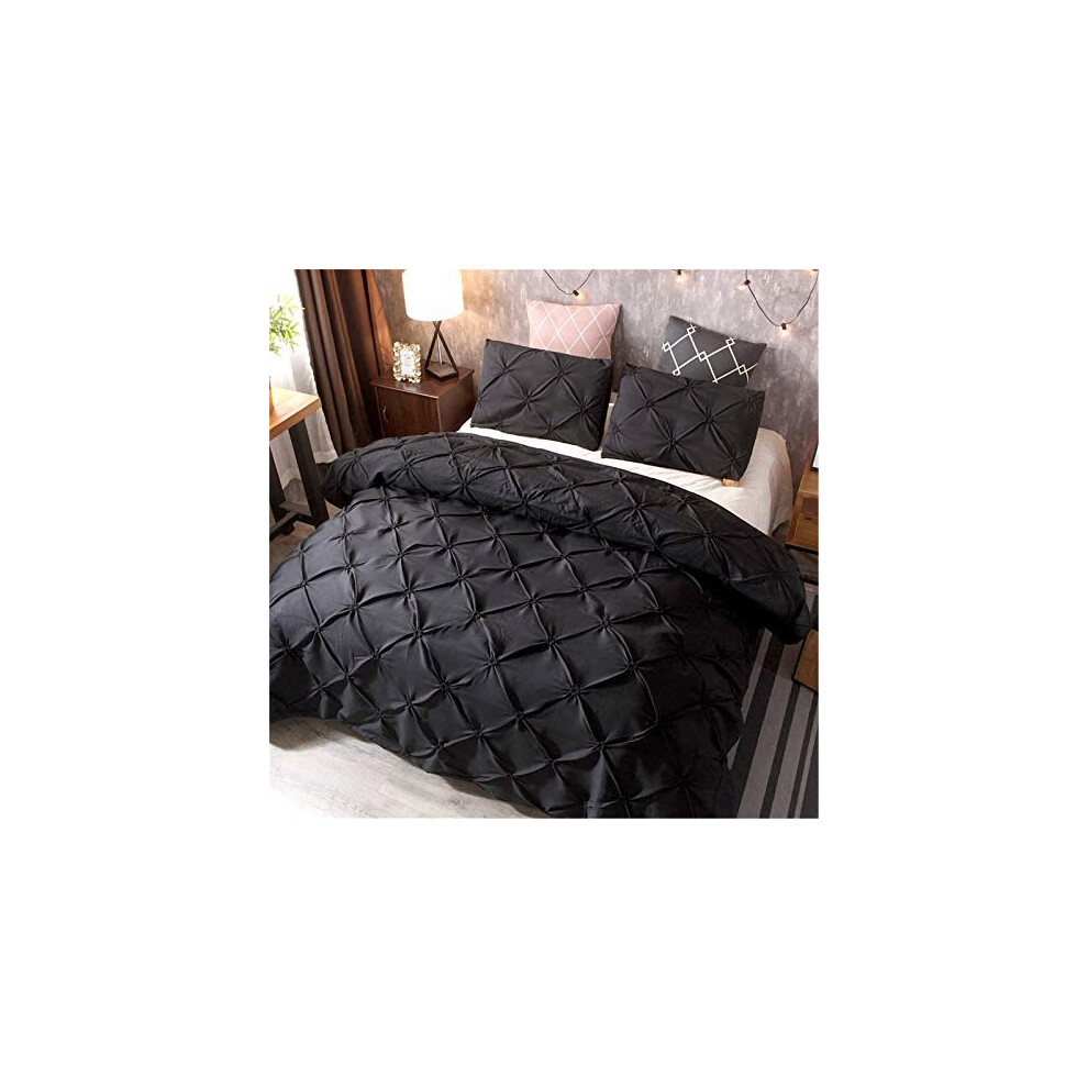 3 Pieces Black Pinch Pleat Duvet Cover Set Pintuck Duvet Cover with 2 Pillowcases Super Microfiber Flower Bedding Set with Zipper Closure King 220x230