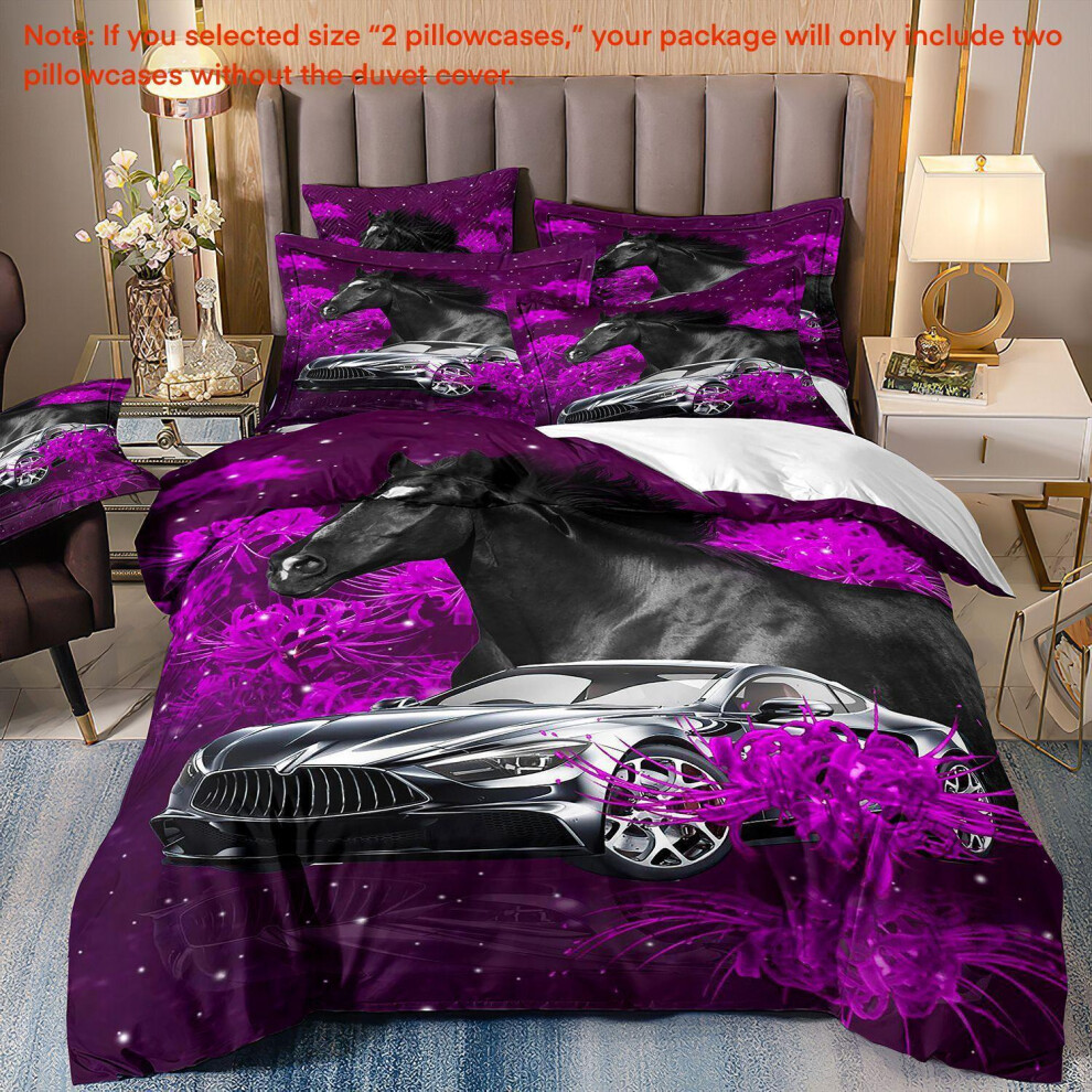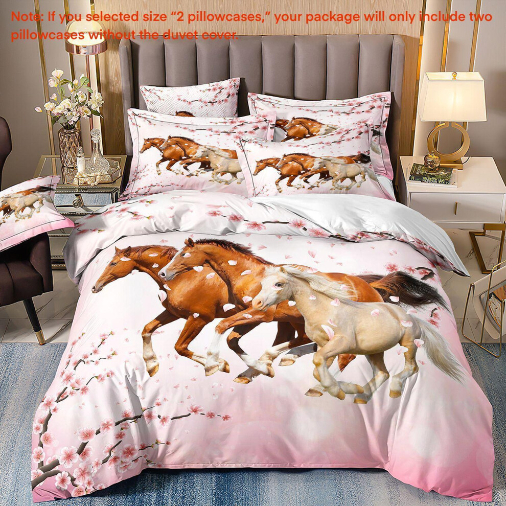 (Super King(260cm à 220cm), 08) Majestic Horse Flower Bedding Set 3Pcs Quilt Duvet Cover Dorm Single Double King