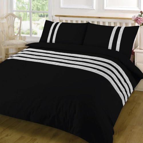 J.Din Grey and Black Plain Dyed Duvet Cover - Soft Brushed Microfiber -Super King Size Bedding Set With Matching Pillow cases - Reversible Quilt Cover Sets