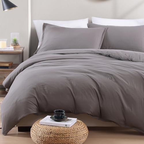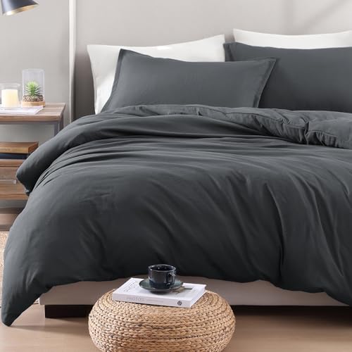 LANE LINEN 4-Piece Super King Bedding Set - Pre-Washed Microfiber Duvet Cover, Fitted Sheet, and Pillowcase – Cozy and Durable (Charcoal)