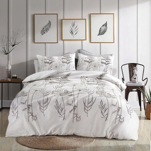 Rapport Home Meadow Brushed Cotton Duvet Cover Set - 100% Cotton Flannelette Super King Floral Bedding Set, White