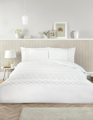Rapport Home White Duvet Cover Set - Soft Contemporary Super King Size Bedding Set - (220 x 260cm) with Pillowcases