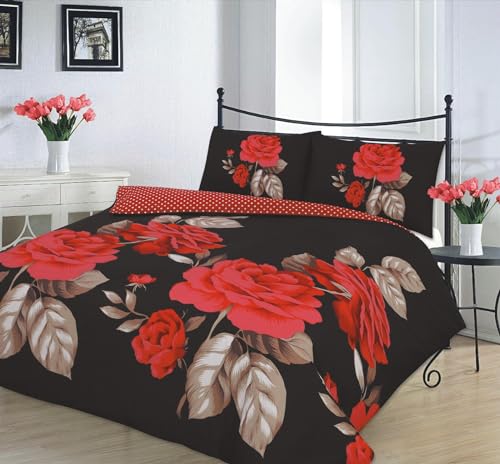 Kampala Hill Isabella Black Red Duvet Cover Set Floral Themed Super King Bedding Set