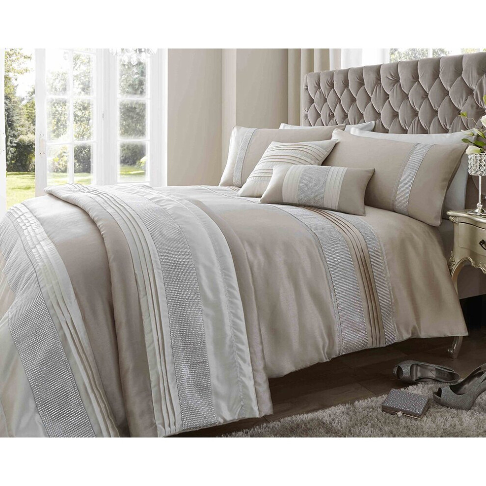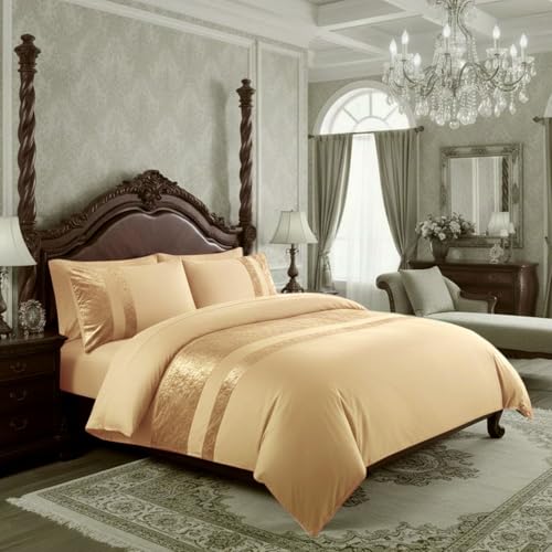 Casabella Luxury Crushed Velvet Panel Band Duvet Cover Sets with Pillow Case Super King Duvet Cover Bedding Set – Beige Crush Velvet Super King Duvet CoverSets