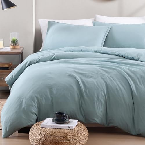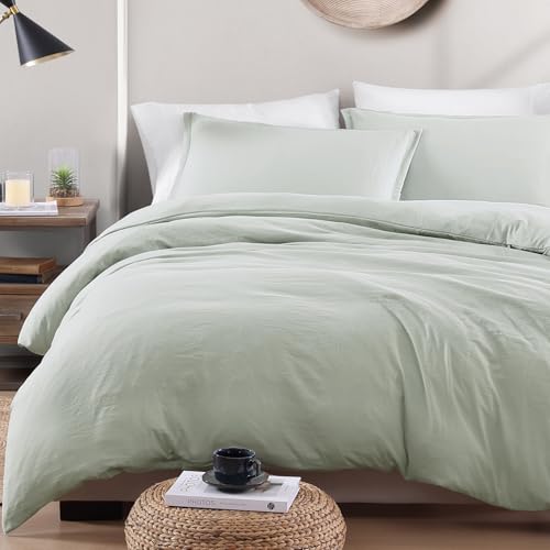 LANE LINEN 4-Piece Super King Bedding Set - Pre-Washed Microfiber Duvet Cover, Fitted Sheet, and Pillowcase – Cozy and Durable (Mineral)