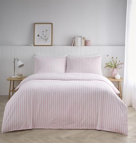 Kampala Hill Pencil Stripe Pink Duvet Cover Set Super King Bedding Set with Pillowcases