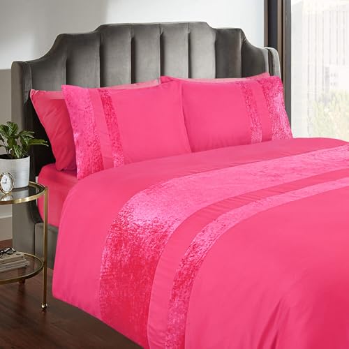 Casabella Luxury Crushed Velvet Panel Band Duvet Cover Sets with Pillow Case Super King Duvet Cover Bedding Set – Red Crush Velvet Super King Duvet Cover Sets