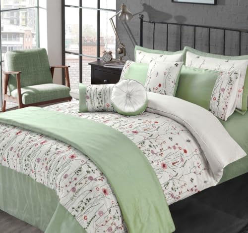 Kampala Hill Arabella Embroidery Green Duvet Cover Set With Pillowcases Super King Bedding Set
