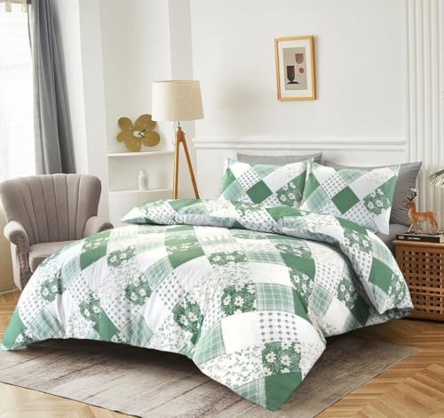 Kampala Hill Eloise Green Duvet Cover Set Super King Bedding Set Floral Patchwork