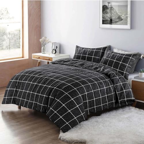 Homespace Direct Monochrome Check Super King Bedding Duvet Cover Set Modern Style Polycotton